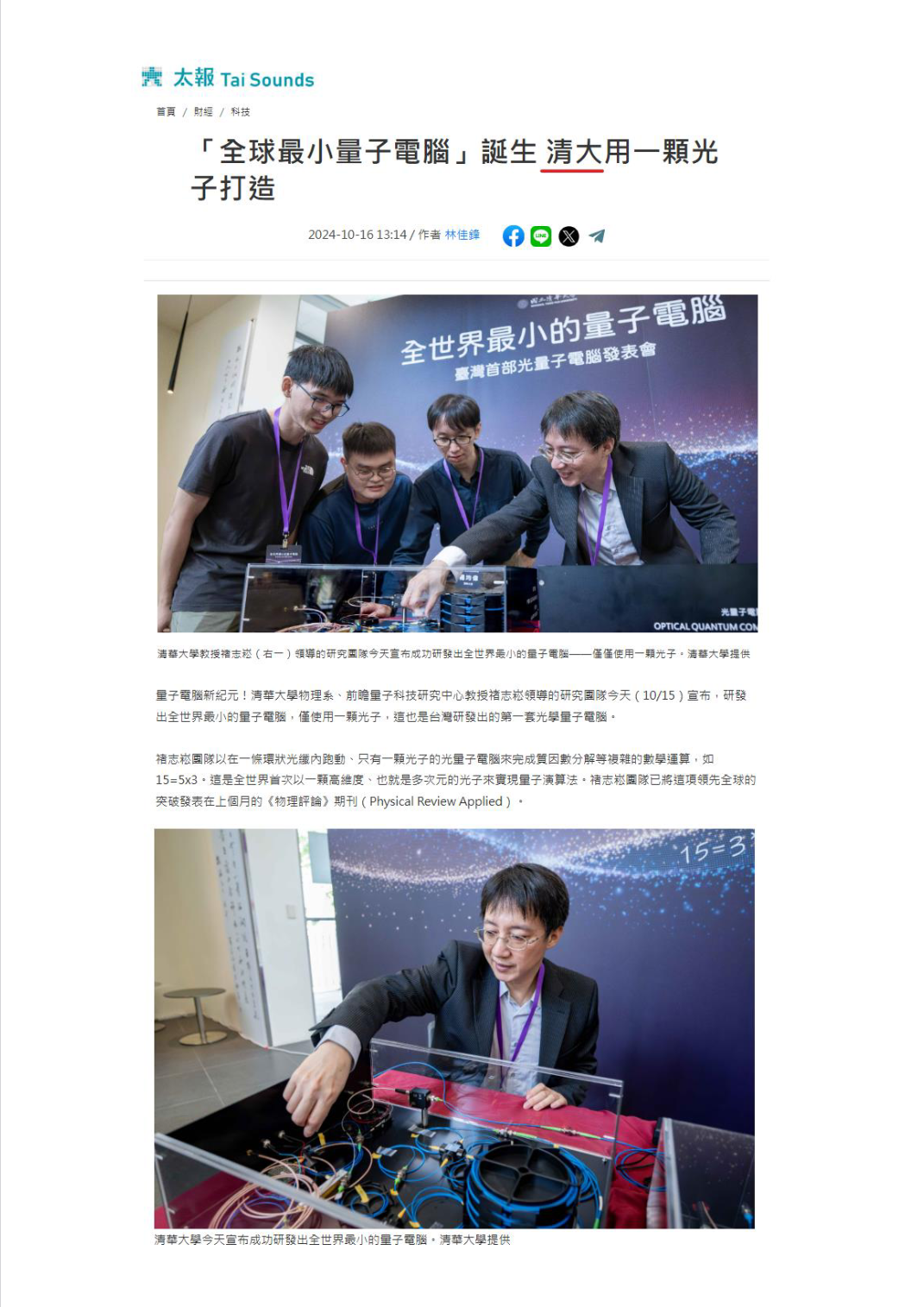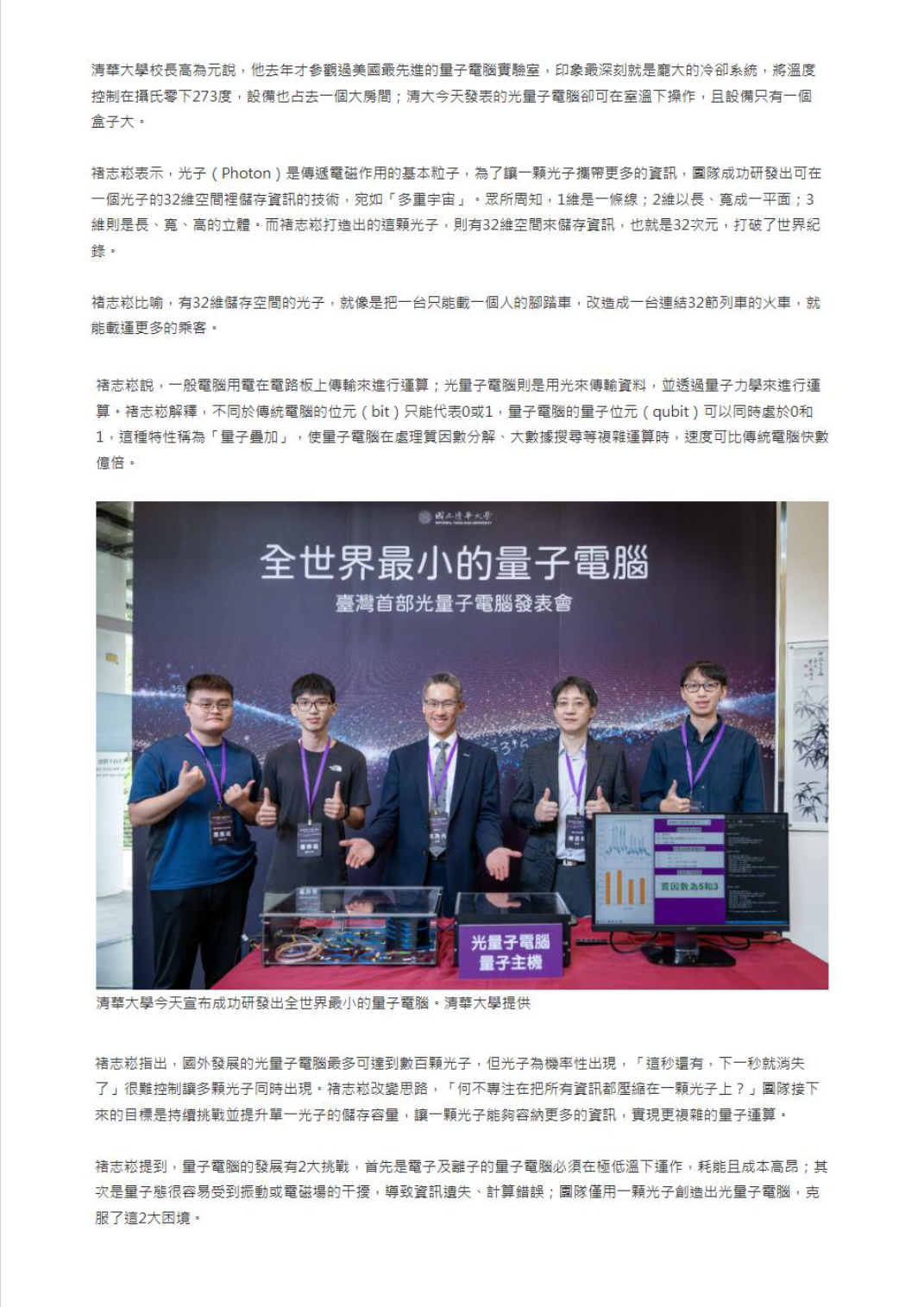 「全球最小量子電腦」誕生 清大用一顆光子打造