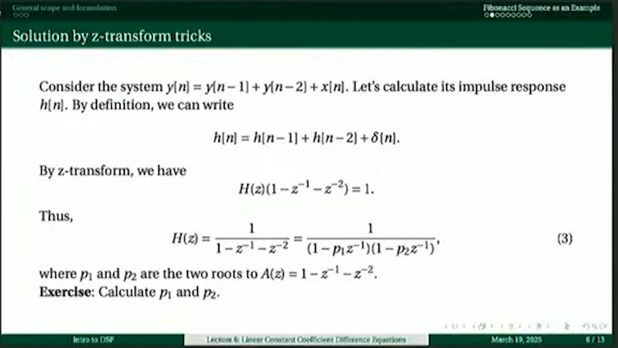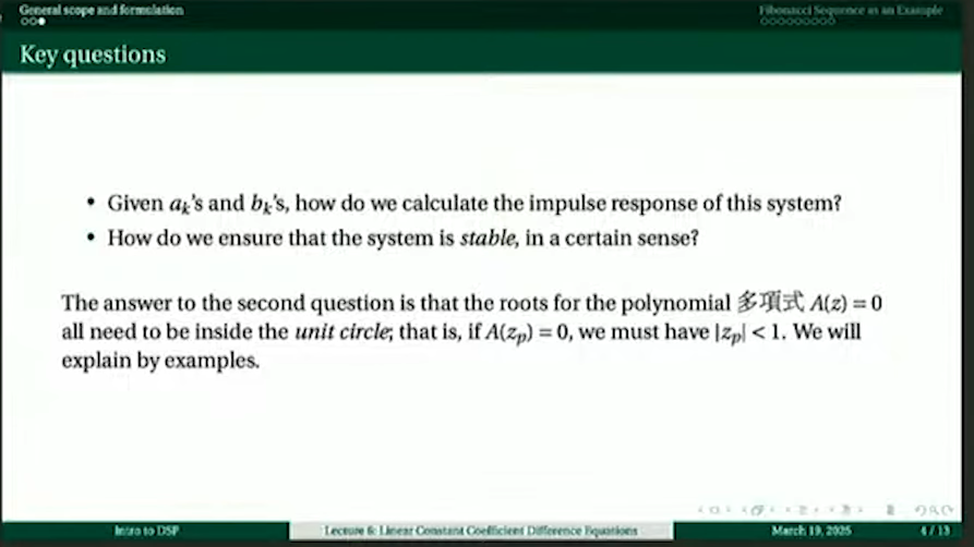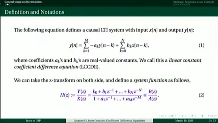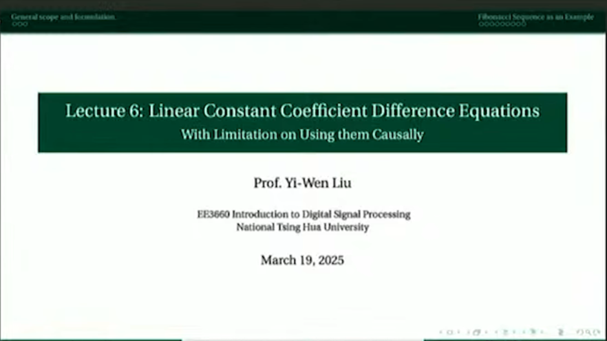 第6講 Linear Constant Coefficient Difference Equations With Limitation on Using them Causally
